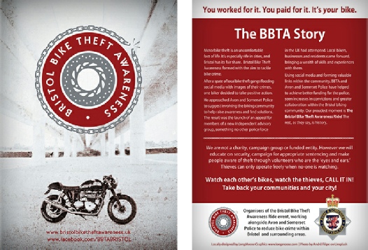 This valuable community group needed an identity, with a flyer to hand out at bike shows, with the aim of helping to tackle bike crime.